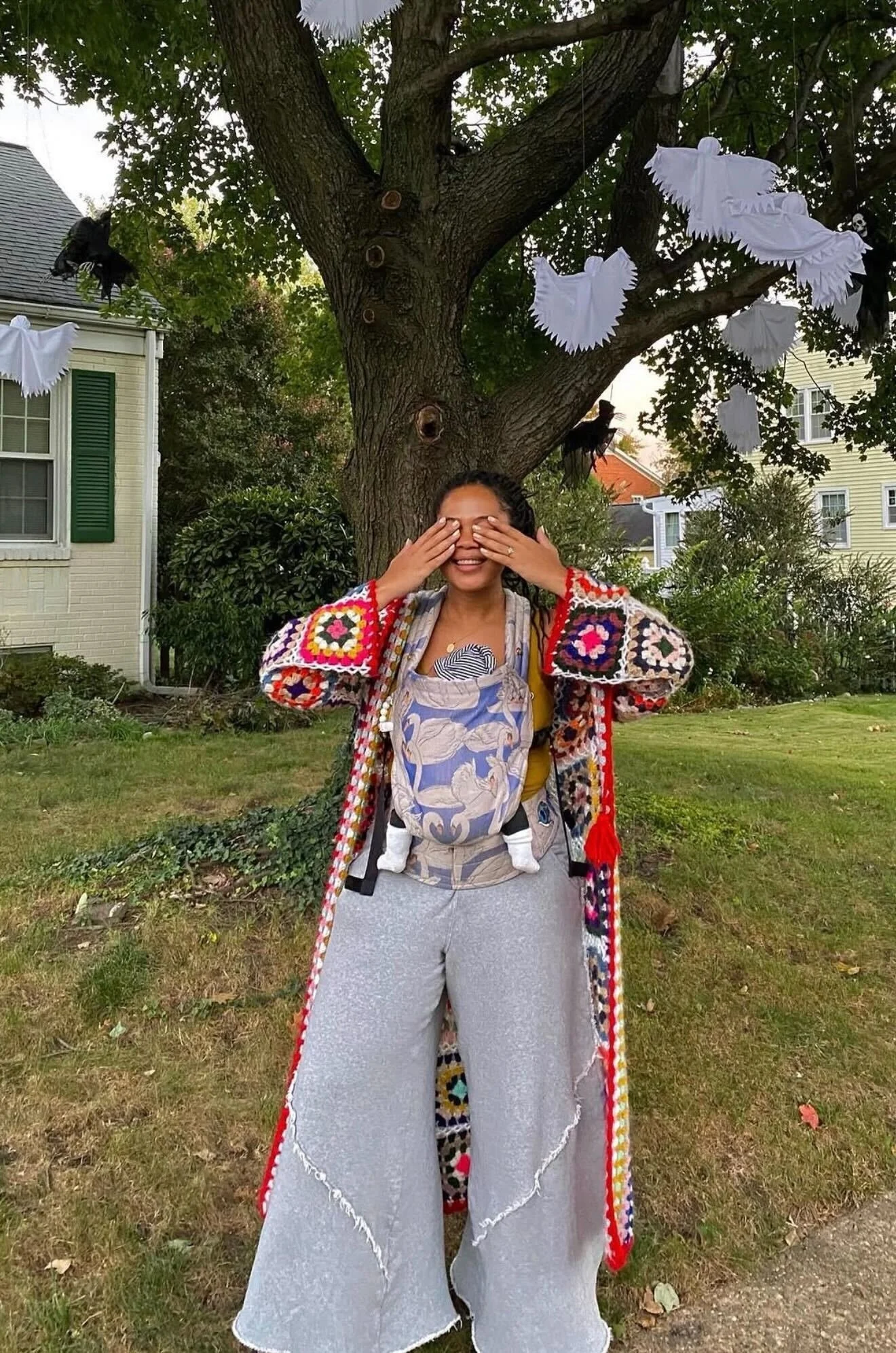 Wearing her happiness on her sleeve, literally